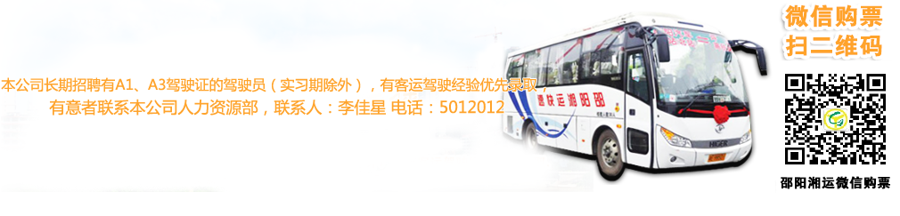 版權(quán)所有:湖南邵陽湘運集團(tuán)有限責(zé)任公司 聯(lián)系地址:湖南省邵陽市北塔區(qū)魏源路汽車北站 聯(lián)系電話辦公室/傳真:0739-5012598 網(wǎng)站備案號:湘ICP備15017404號-1
